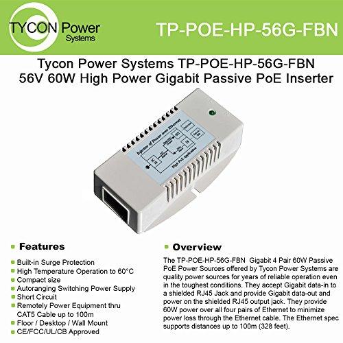 56V 60W 4 Pair High Power Gigabit Passive POE Power Inserter. US Power Cord
