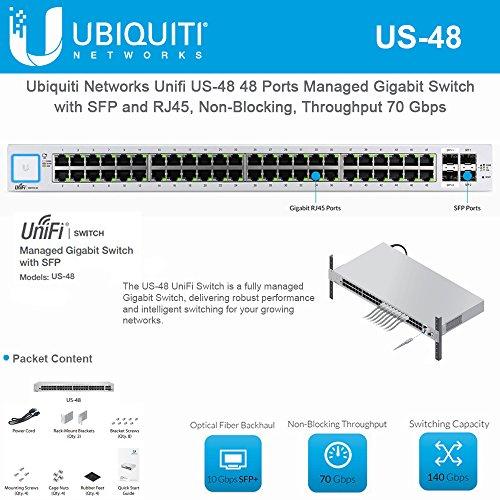 - Ubiquiti Network Unifi US-48 48 Ports Managed Gigabit Switch with SFP and RJ45, Non-Blocking, Throughput 70 Gbps