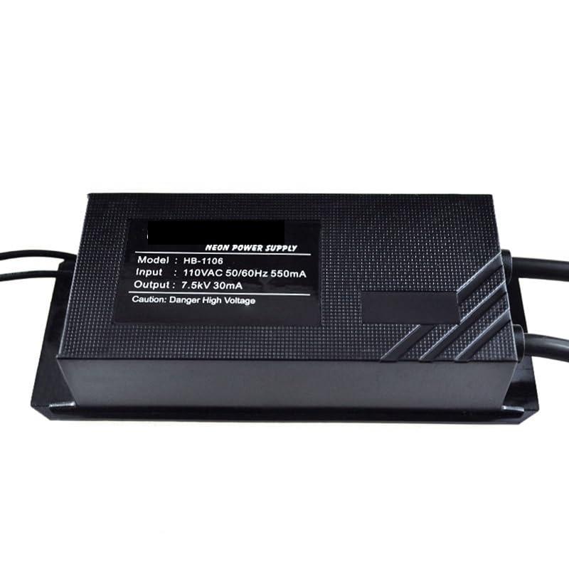 HONGBA Neon Sign Transformer Power Supply Rectifier Kit 7.5KV 30MA 110V Neon Transformer Power Electronic Rectifier Kit NEON LIGHT TRANSFORMER: This neon light transformer is made of high quality material. Fine workmanship, and practical. Durable in use.TRANSFORMER SPECIFICATION: High power factor Greater than0.9, low electromagnetic interference.WATERPROOF&MOISTUREPROOF Fully sealed structure waterproof and moistureproof Exposed grounding output light board ground mounting easy.SUITABLE INDOOR&OUTDOOR USE Suitable for use in indoor and outdoor installationVoltage AC110VMaterial plasticcolour blackPackage Contents 1 x HB1106 TransformerOnly the above package content, other products are not included.Note: Light reflection and different displays may cause the color of the item in the picture a little different from the real thing. The measurement allowed error is +/- 1-3cm.