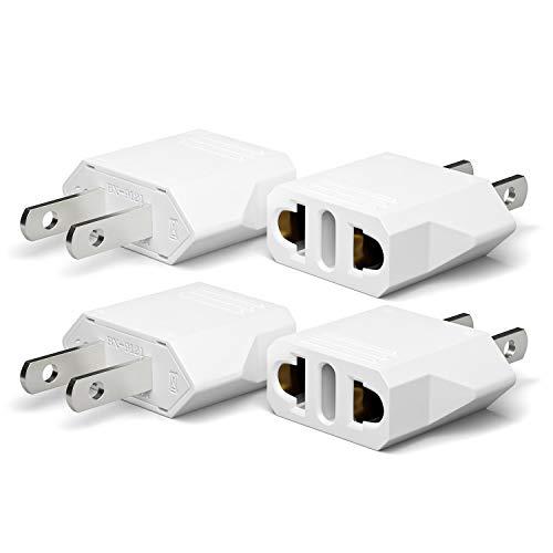 - PREMIUM QUALITY European/Australian to Usa America flat plug adapters all white 4-pack. The adapters also works with the European type E/F (schuko plugs), just press hard to get them in the first time.