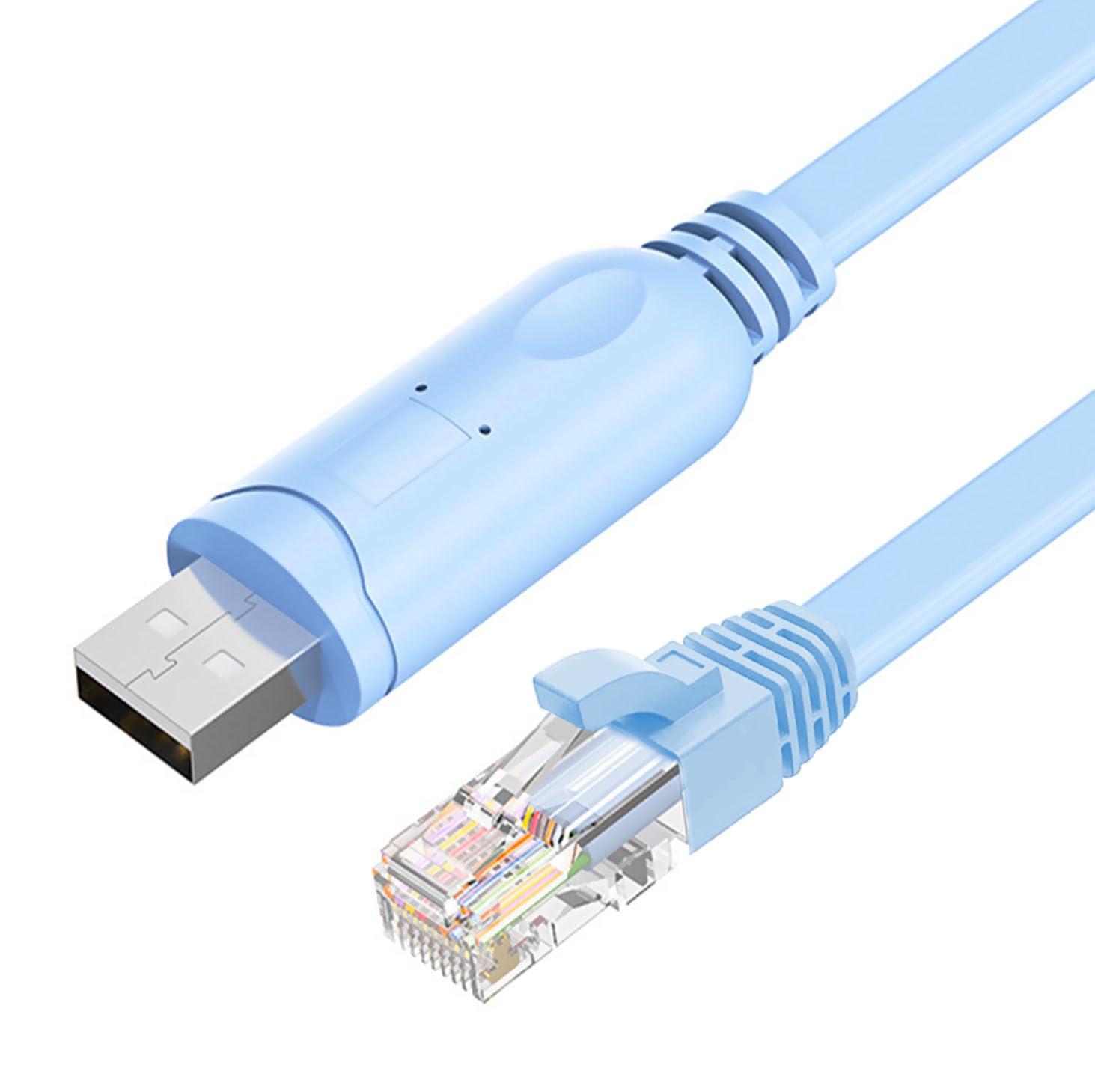 - USB to RJ45 Console Cable 6FTSuitable for debugging and configuring communication operations on devices such as switches/routers/firewall servers with RJ45 Console interface.