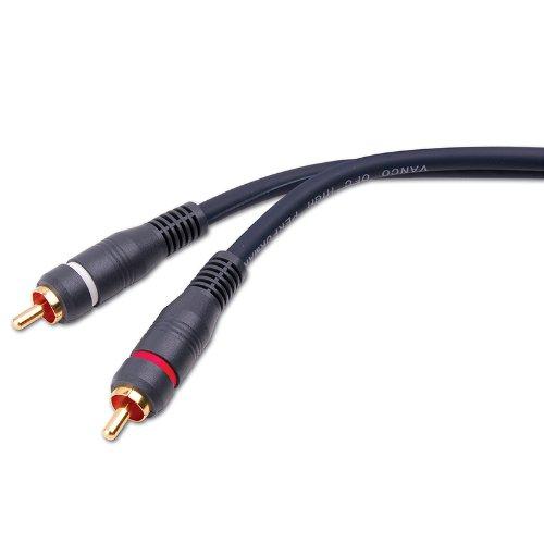 Stereo patch Cable features gold-plated dual RCA male plugs to dual RCA male plugs, heavy duty 20AWG stranded center conductor for less signal loss, shielding for high quality applications. Used with various audio inputs from VCR, TV, DVD, CD, camcorder, amplifier or stereo receiver.