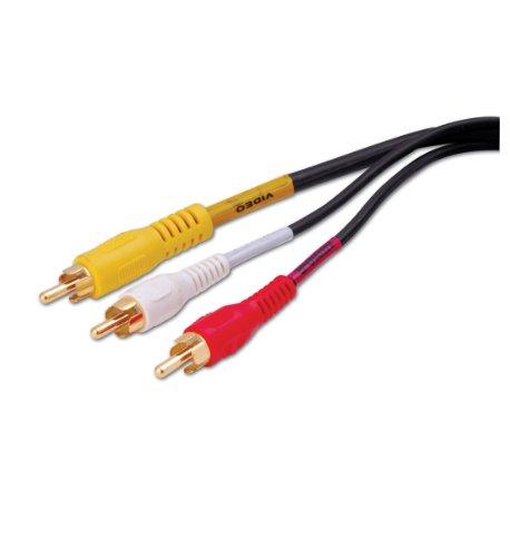 The Triple RCA Composite Audio/Video Cables provides stereo audio and video to stereo audio and video. It connects audio and video output from DVD, cable, VCR, video switch, etc. to audio/video TV, VCR. Use this RG59 coaxial cable for stereo to stereo dubbing. RG59 cable is used for very basic video applications and connects 75 Ohm coaxial output from antenna, cable, VCR, splitter, etc. to 75 Ohm coaxial input of TV, VCR, etc.
