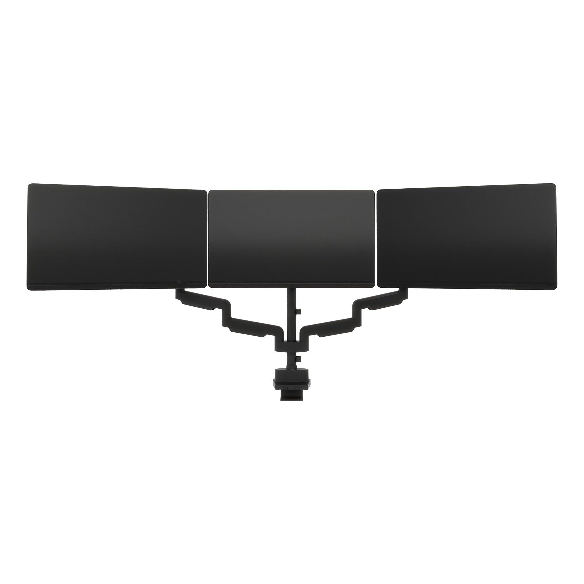 - Easy Assembly: This Vari three monitor desk mount assembles in minutes, with compact dimensions of 21.25"(H) x 16"(W) x 8"(D) to support the C-Clamp style mount for effortless setup.