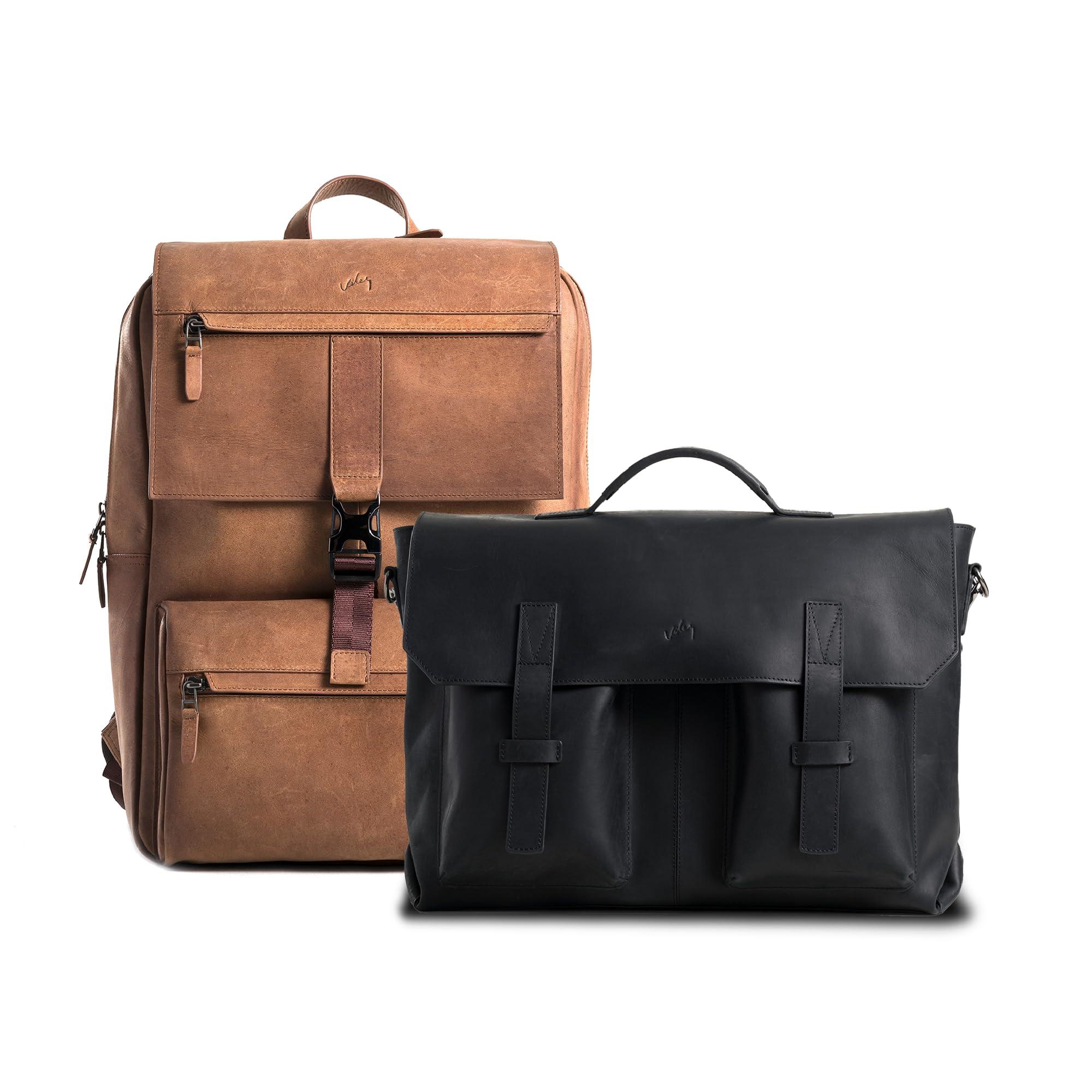 "Our briefcase is crafted from smooth, distressed leather, it combines durability with elegance. With a design that includes two front pockets, a zippered back pocket, and a dedicated compartment for a 17"" laptop, it seamlessly blends practicality and style. Secured by a zipper system and lid, it strikes the perfect harmony between tradition and innovation. Elevate your daily routine with this embodiment of enduring quality and modern convenience Our men's backpack is meticulously handcrafted in Colombia by artisans boasting over 30 years of expertise. Crafted from top grain leather, this backpack isn't just stylish; it's built to last. Its soft, smooth leather touch adds a vintage and distinctive charm. With a generous capacity featuring front and internal zippered pockets, a dedicated laptop compartment, and thoughtful details like adjustable straps and a metal clasp closure, this backpack effortlessly blends style and practicality, making it your ideal companion for daily commutes"