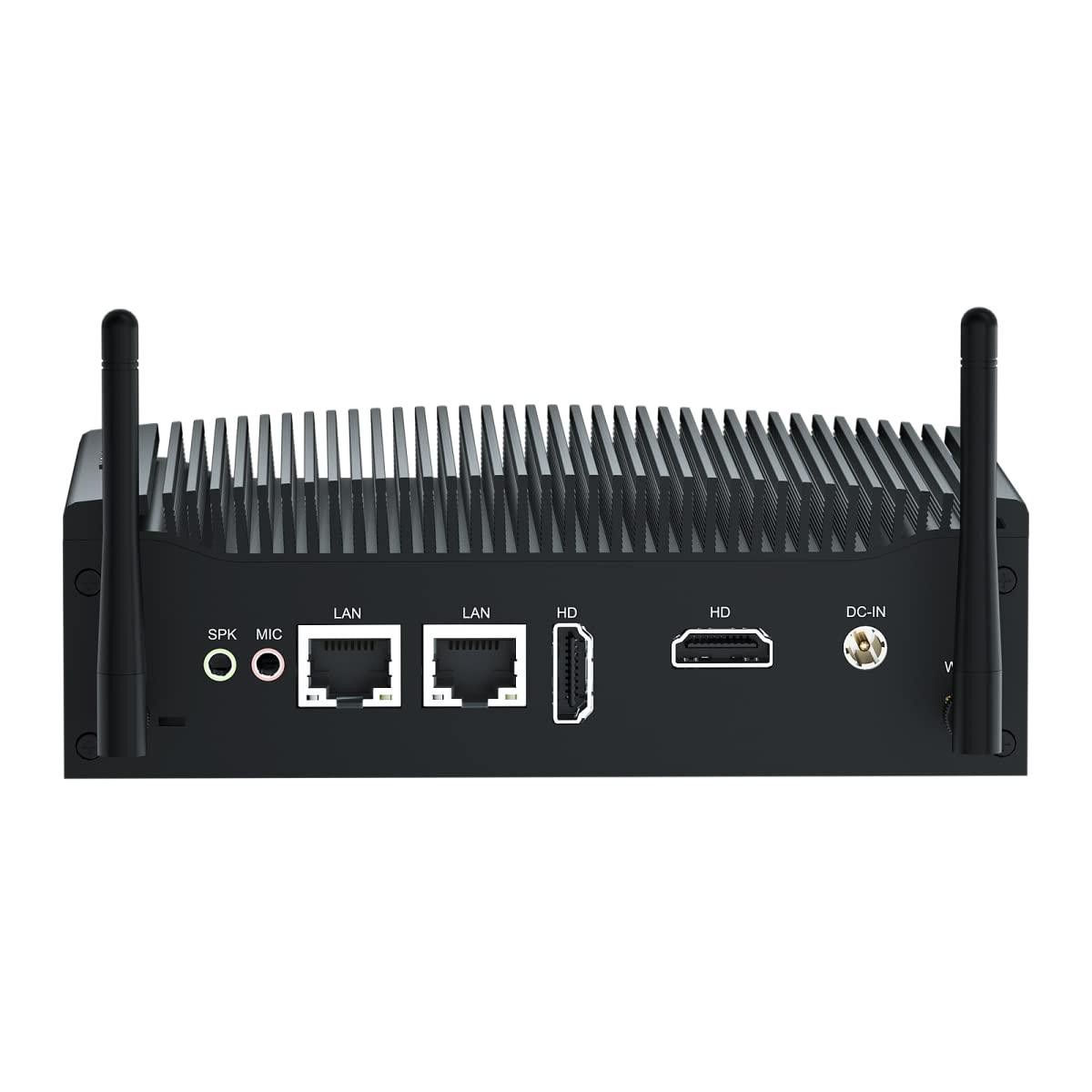 - Rich ports and Multi-function Designed with 2 x RJ45 Gigabit LAN Ports, 2 x HD, 2 x RS232 COM, 4 x USB3.0, 4 x USB2.0, 1 x Ken-sington Lock , SPK/MIC 12V DC IN, fanless design, Aluminum alloy case heat dissipation, NO FAN, NO NOISE, NO DUST. this industrial mini pc support Wake on Lan, Auto Power On,