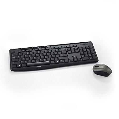 Say goodbye to noise and hello to silence with the Verbatim Silent Mouse and Keyboard. Using new Silent Technology, silent click switches, and rubber covers, these Verbatim products are truly silent. The nano receiver is small enough to plug in and leave connected and the 2.4GHz wireless performance allows for a lag-free connection. The Silent Mouse features Blue LED technology, allowing users to point and click on more surfaces than other mice from a glass table to the granite kitchen counter! The Silent Keyboard features a full numeric keypad and full-size function keys, all within a slim, efficient design. Contents: Keyboard, Mouse, Nano receiver, 4 x AAA batteries Package Includes: Keyboard, Mouse, Nano receiver, 4 x AAA batteries
