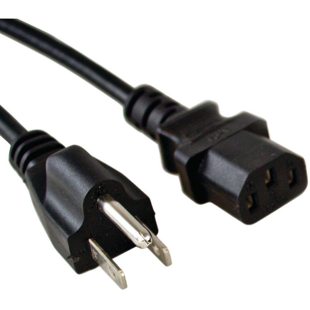 Perfect for eliminating cable clutter, this 125 V/10A 2ft long black computer power cord from Vericom with 18-gauge wiring has a 3-pin female (IEC-320 C13) to 3-prong male (NEMA 5-15P) connection. Rated for 1,250W, it is designed to work with most PC computers, printers, monitors and other devices. UL listed, RoHS compliant.