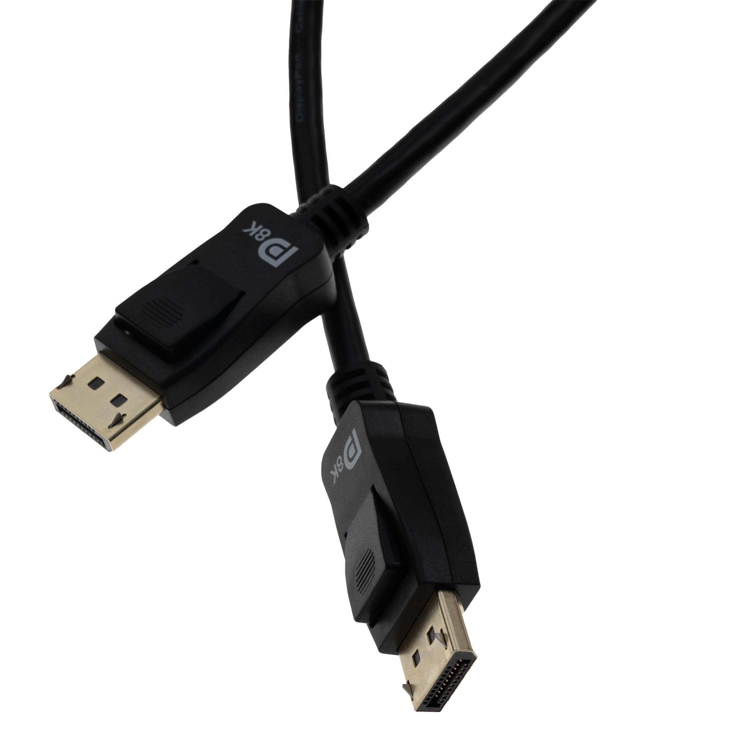 Enhance your viewing experience with our premium 3-foot DisplayPort 1.4 video cable. Certified by VESA, this cable is designed to deliver unparalleled performance, supporting resolutions up to 8K@60Hz and 4K@120Hz. Equipped with advanced features like Display Stream Compression 1.2 and High Bit Rate 3 bandwidth, it ensures a visually lossless, high-fidelity gaming or streaming experience. The gold-plated connectors ensure a stable, high-quality connection, while the cable's latching design secures it firmly in place. Whether you're connecting to a high-end monitor, TV, or projector, this cable is compatible with a range of DisplayPort-equipped devices and is backward compatible with previous DisplayPort versions.