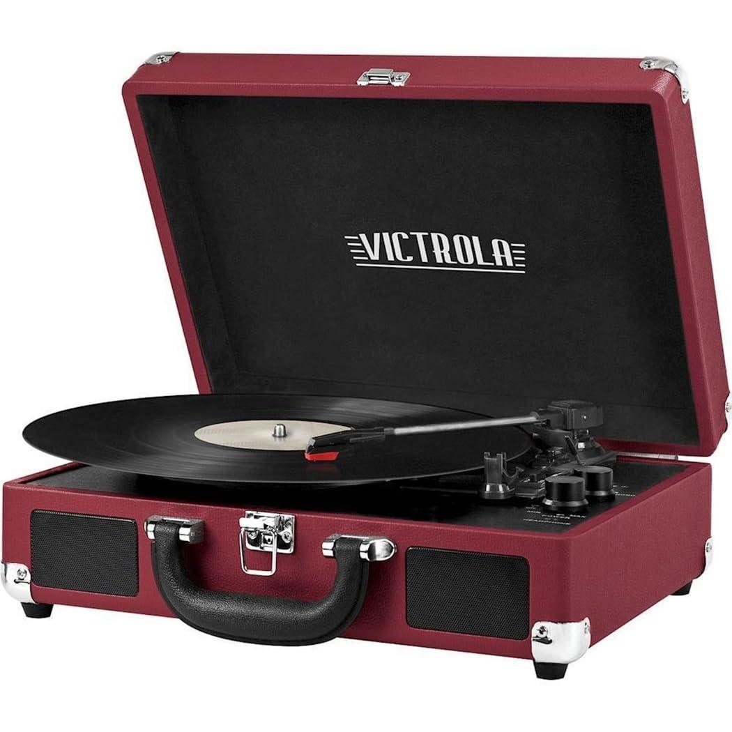 - TAKE YOUR TUNES ANYWHERE - Housed in a vintage suitcase with an easy carry handle, Victrola's blend of retro and contemporary design give you the ultimate flexibility to listen to music where you want and how you want a great choice for vinyl lovers. Clean only with a dry cloth