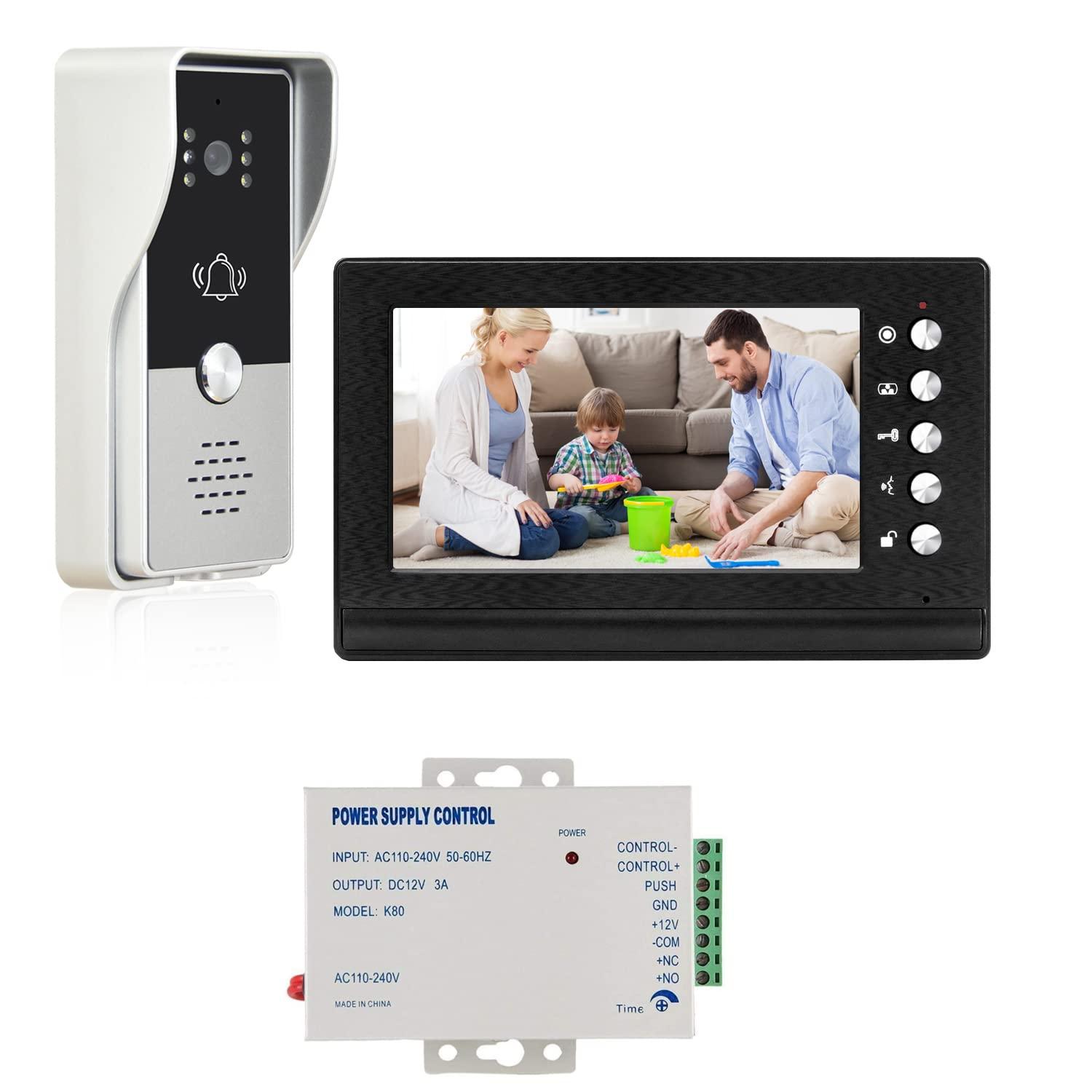 - Supports hands-free intercom, clear voice and good sound quality. Very easy to adjust the brightness, volume, contrast and 7 ringtones of select, hands free intercom, electric unlocking functions, monitor the outside view.