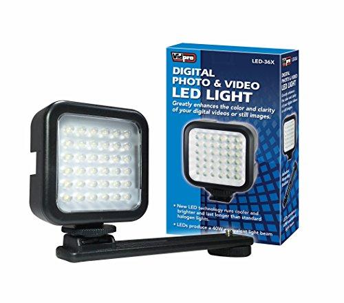 Greatly enhances the color and clarity of your digital videos or still images. New LED technology runs cooler and brighter and last longer than standard halogen lights. LEDs produce a 40W equivalent light beam Specs: Power: 2.8W 3.0V DC Color Temp. 5600K Luminous Flux: 180LM Illumination Angle: 65