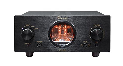 The Vincent SV-200 is an amplifier with a high dynamic range, an extremely low noise level, and plenty of musicality. The music signal is sweetened by two 6N1 vacuum tubes in the input stage. But don't let the presence of tubes give you the false impression that this is yesterday's component. The SV-200 is nicely equipped for today's digital sources, thanks to its digital inputs and built-in DAC. Perfect for a smaller hi-fi or home theater system, the SV-200 delivers 25 watts-per-channel at 8 ohms and 35 watts-per-channel at 4 ohms. That means it has more than enough power to fill a small to medium size room with beautiful sound when used with sensitive speakers. And, as with most Vincent power amps, it sounds far more muscular than its specified power ratings might imply. And the hybrid circuitry can't be beat for sheer musical enjoyment at anywhere near the price range. The SV-200 delivers the best of two worlds to audiophiles, combining the advantages of both transistor amplifiers and vacuum tube components. The combination of a vacuum tube input stage and solid state output stage gives you the best of the classic Golden Age richness that only tubes deliver. It also delivers the power, control, and reliability associated with solid-state electronics. This hybrid tube and solid state circuitry is a Vincent specialty, a proven combination which Vincent has used to great success in some of its most widely acclaimed amplifiers. The hybrid design of the SV-200 features two 6N11 input tubes in a differential push-pull design, giving the sound the classic warmth and lushness that you can only achieve through the use of vacuum tubes, followed by a powerful output stage using Toshiba FET transistors operating in Class AB mode.