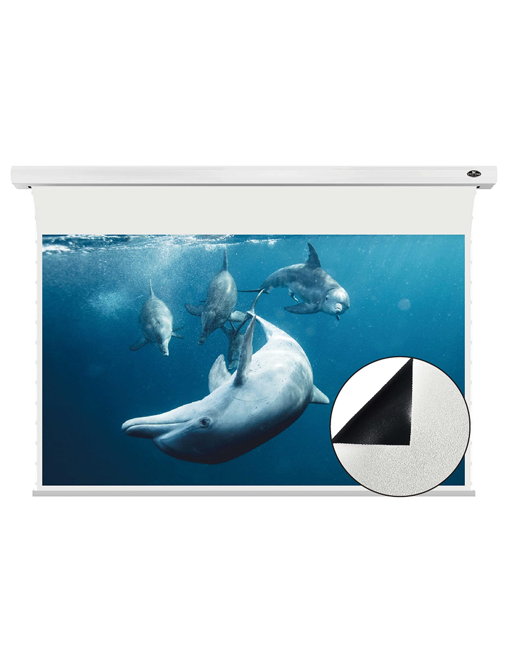 - New choice projector screen for NORMAL THROW PROJECTORMotorized projection screens are a versatile solution that allows the screen to retract back up into his casing so that the open space once occupied by a large projection surface is now available for other uses.Suitable for all kinds of NORMAL THROW PROJECTOR, presenting the best picture when the light is off!(Not compatible Ultra short throw Laser projector!)