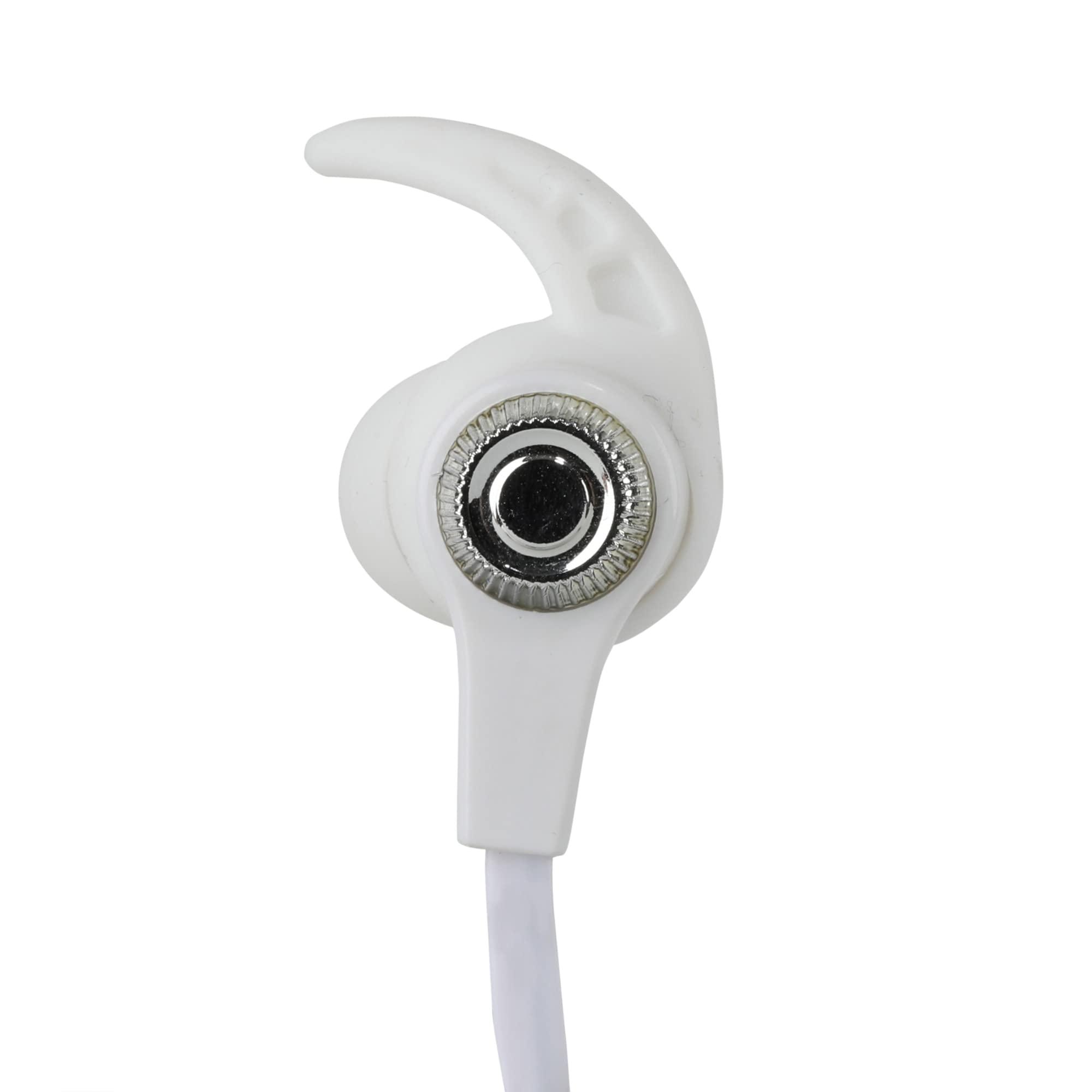 Listen to your favorite music hands-free thanks to these Bluetooth in-ear headphones. Create an immersive experience with crystal-clear sound anywhere you go. Earbud design has a secure fit and directs sound into your ears to provide an immersive experience. Compatible with most Bluetooth devices. Connect your headphones and listen cord-free. Built-in microphone allows you to make and receive hands-free calls. Rechargeable battery allows you to use earbuds again and again. Skip, pause and rewind music via buttons on the earbuds. Backed by the manufacturer's 1-year limited warranty.