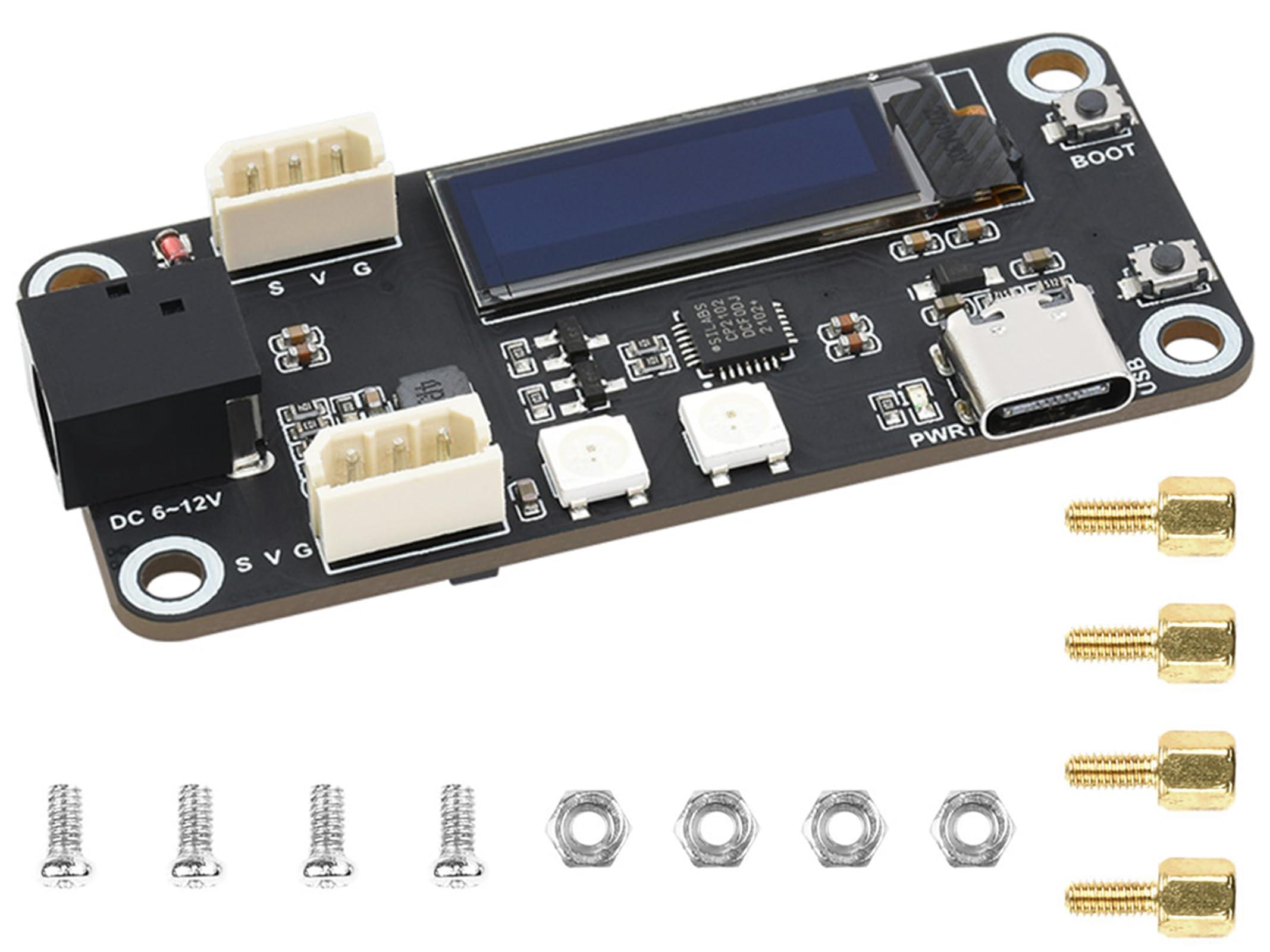 This product supports the programming of servos to change the ID and working mode of the servos (servo mode/motor mode) in theory, it can control 253 bus servos and read the current angle, load, voltage, mode, and other information of each servo, and can use the serial port to communicate with the upper computer, which is used to build the lower computer of the robot project, and the on-board OLED. The screen can be used to display key information and is suitable for robot projects that require feedback on the angle and load of the servos such as robotic arms, hexapod robots, humanoid robots, wheeled robots, etc.