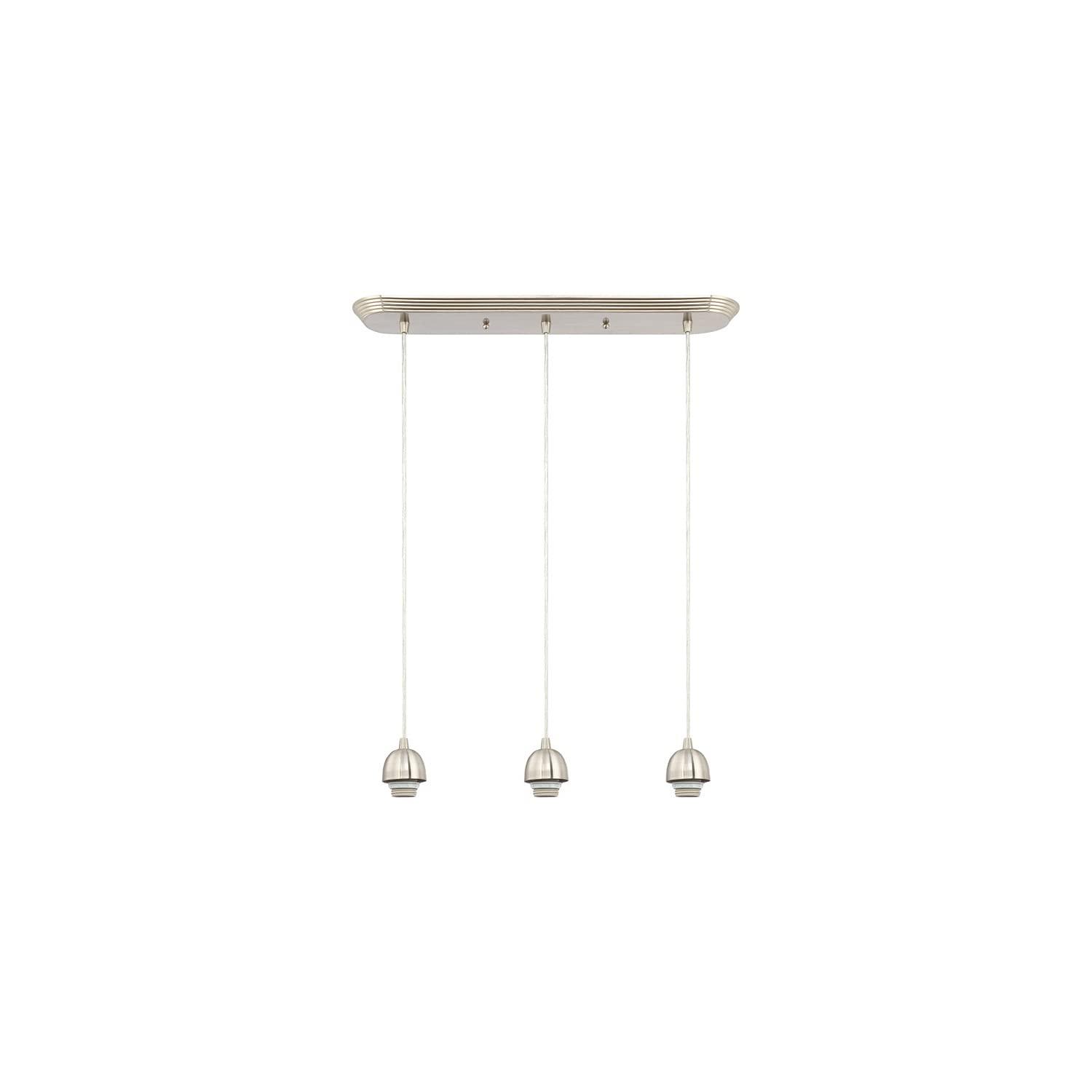 3 light, brushed nickel finish, adjustable Mini Pendant, 64-5/8"H x 4-1/2"W & 23-1/2"L, 50" clear cord, uses 3 medium base A19 bulb, 100W maximum lamp, customize with any 2-1/4" fitter glass shade to match your decor, glass is not included, UL approved.