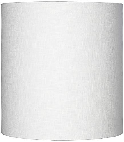 - Tall drum shade in a white linen blend fabric with rolled edges. Hardback poly styrene inner liner.