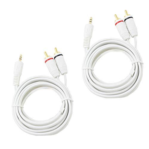 Wideskall 12 Feet 3.5mm Male to 2 RCA Male Stereo Audio Cable (Pack of 2, White)