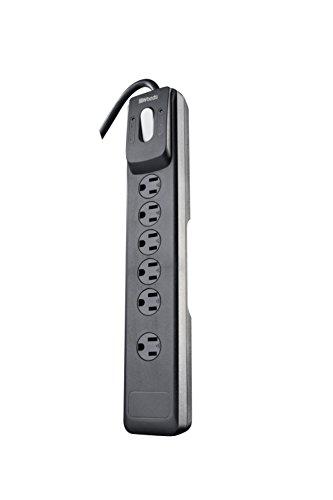 - Space-saving 6-outlet surge protector: this surge protector doesnt take up much space as it has a slim profile; its discreet flat plug also doesnt stick out; minimizing clutter and adding style