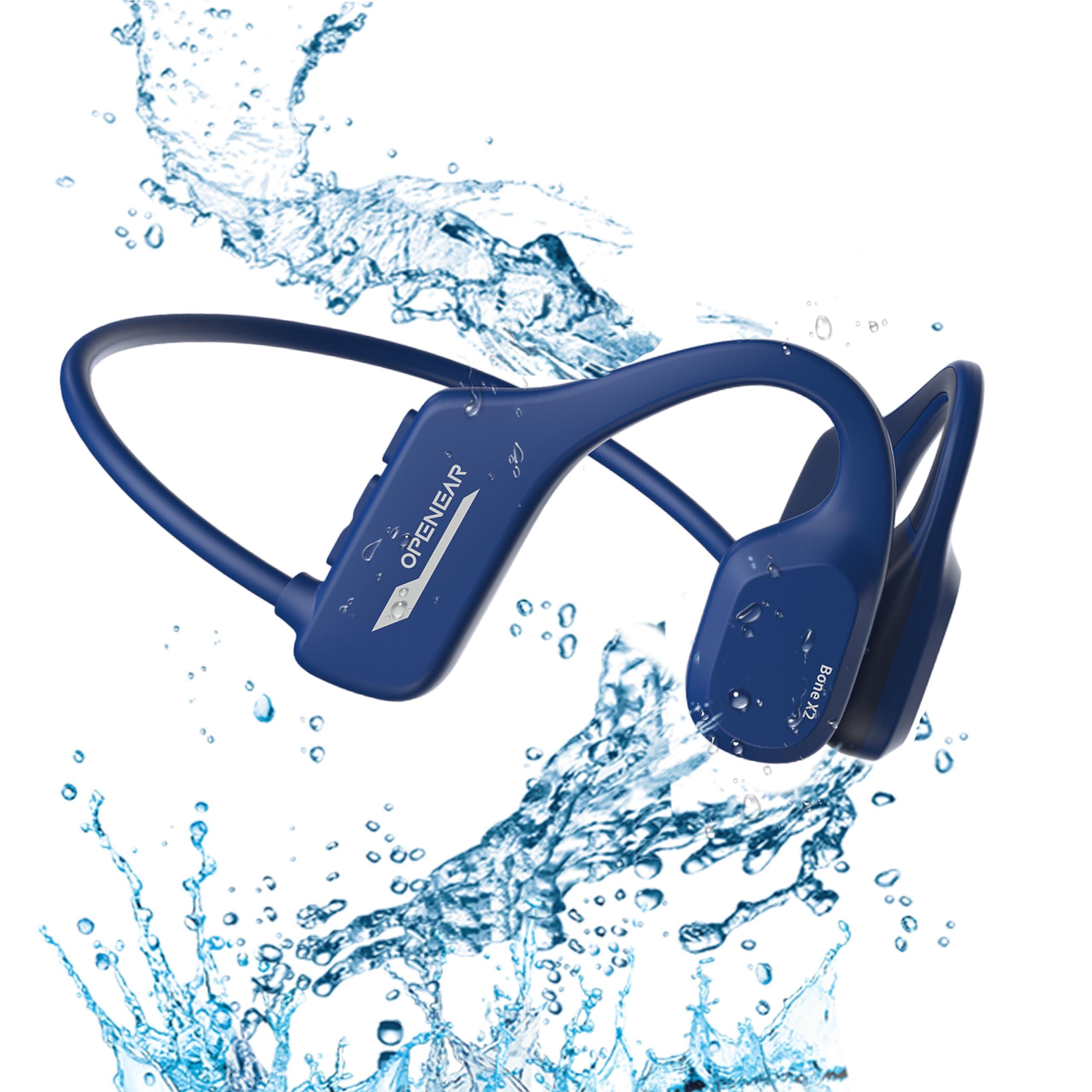XIMAND Bone Conduction Headphones IP68 Swimming Waterproof Dustproof Sweatproof MP3 Player Headset Underwater Music Player 8GB 1000 Songs, Open-Ear Wireless Earphones Bluetooth 5.3 with Mic - Blue