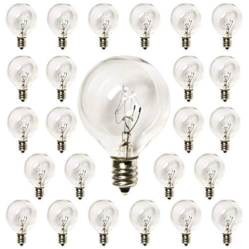Clear Globe G40 Bulbs E12 Bulbs Candelabra Screw Base Pack of 10 Light Bulbs Warm Replacement Glass Bulbs for G40 Strands UL Listed for Indoor and Outdoor Commercial Uses. 5W Each Bulb
