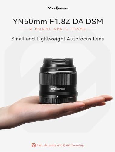 - Z Mount APS-C Lens for Nikon YN50mm F1.8Z DA DSM Lens for Nikon Z Mount Mirrorless Cameras APS-C Autofocus Prime Lens, This product is designed for Z-mount mirrorless camerathe maximum diameter and length is about 6760mm,the net weight is about 148g,the light-weight design is not only convenient to carry for outdoors, but also good for long-term handhold shooting and video recording.