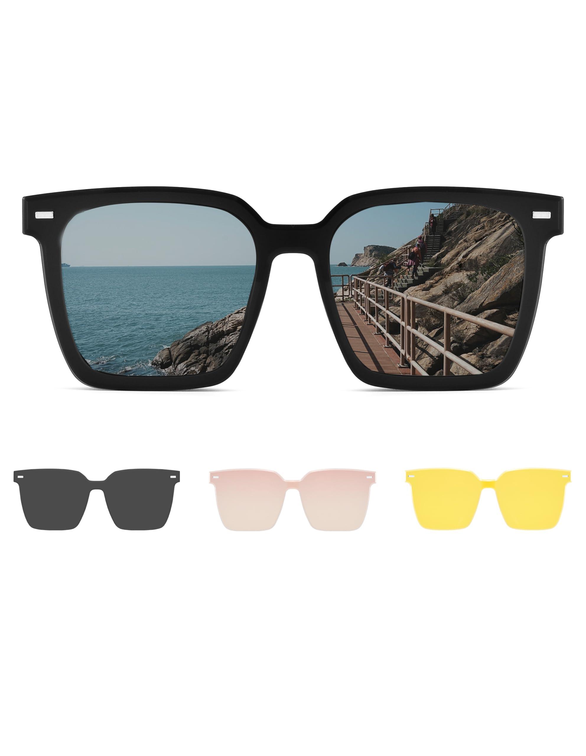 - 4 in 1 pair -Multifunctional eyewear productMagnetic attraction design: mini magnetic chips attached in clip-on glasses are super convenient and reliable which facilitates a flawless connection with the frame. Additonally, three different clip-ons meets your needs in various scenarios.
