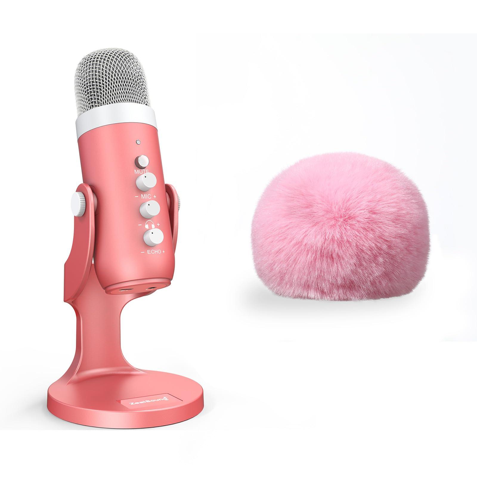 - Useful Accessories] 1 x Solid built metal construction and anti-vibration stand base (avoid moving); 1 x Durable and professional-grade k66 series pearlescent pink microphone; 1 x 70.87 inch USB Audio Cable; 1 x Type C Adapter for the Newest MacBook and all other Type C devices (Phone, tablets and PC); 1 x Adapter for New iPhone and iPad Pro; 1 x Microphone Foam Windscreen (block blasting sound); 1 Furry Windscreen Cover;1 x User manual and free Technical Support.