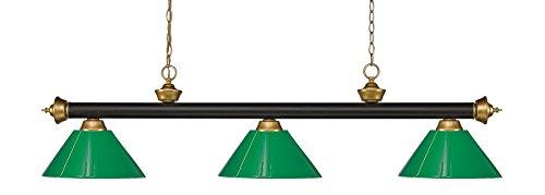 Finished in Bronze & Satin Gold this three light bar fixture uses plastic green shades to create a contemporary look with a timeless quality to it. This fixture would be perfect for the game room, or any other room of the house where a touch of under stated sophistication is needed.