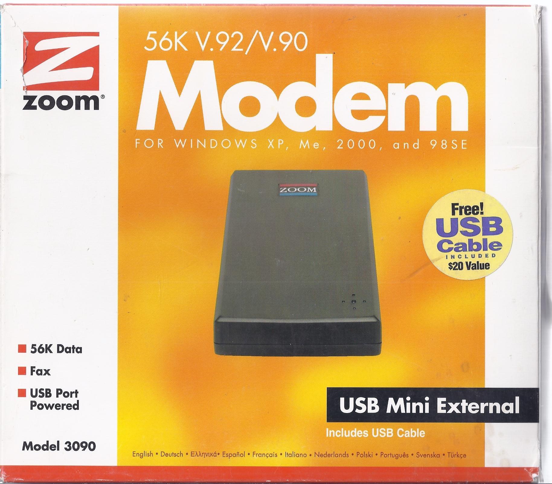 The Zoom/Modem V.92 USB Mini is a compact, low-cost external modem for Windows computers with a USB port. The Model 3090 is fully compatible with all features of the latest V.92/V.44 international standards and will also communicate at V.90 and slower speeds. Does not work with Windows 7 Operating System.