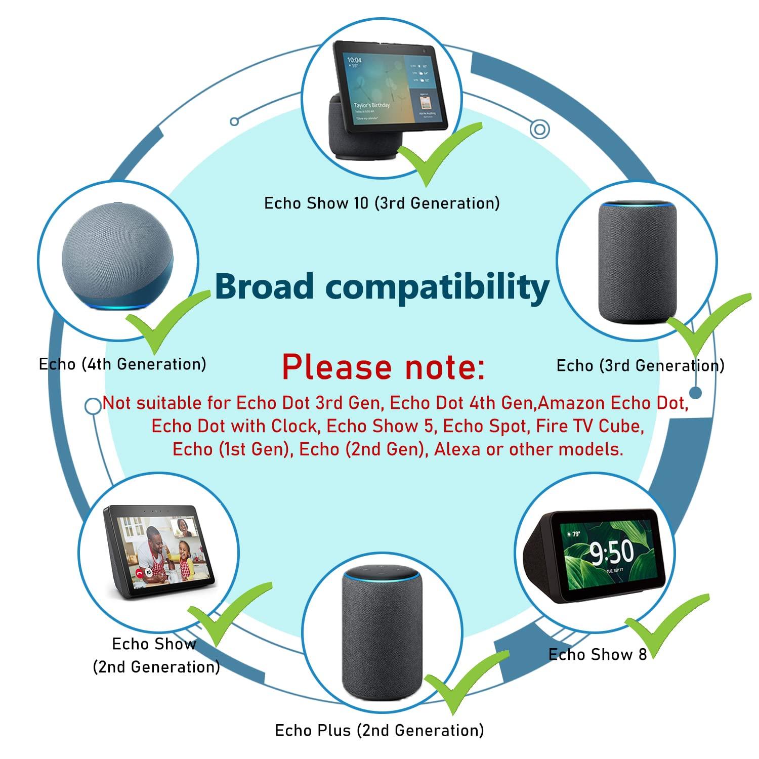 - Not compatible withNot available for Echo Dot 3rd Gen, Echo Dot 4th Gen, Echo Dot, Echo Dot with Clock, Echo Show 5, Echo Spot, Fire TV Cube,Echo (1st Gen), Echo (2nd Gen), Alexa or other models.