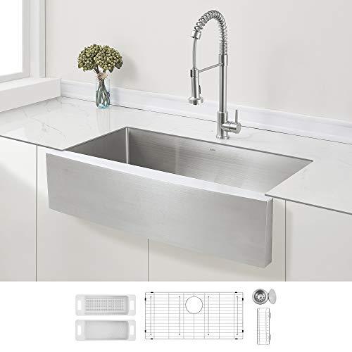 - EASIEST FARM HOUSE SINK TO MAINTAIN Tight radius R10 curved corners with fast drain gentle wipe keeps sink sparkling forever; Highest rating by Kitchen Sink Buying Guide